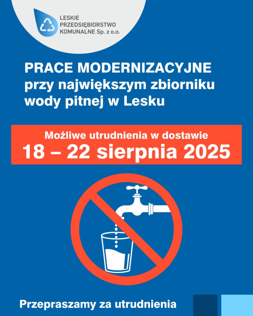 Mieszkańców prosimy o wyrozumiałość i uwzględnienie ewentualnych niedogodności w codziennym planowaniu. Modernizacja ma zapewnić bezpieczne i stabilne dostawy wody pitnej dla Leska na kolejne lata.