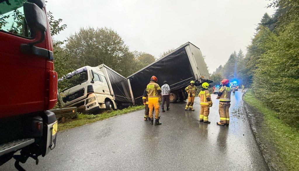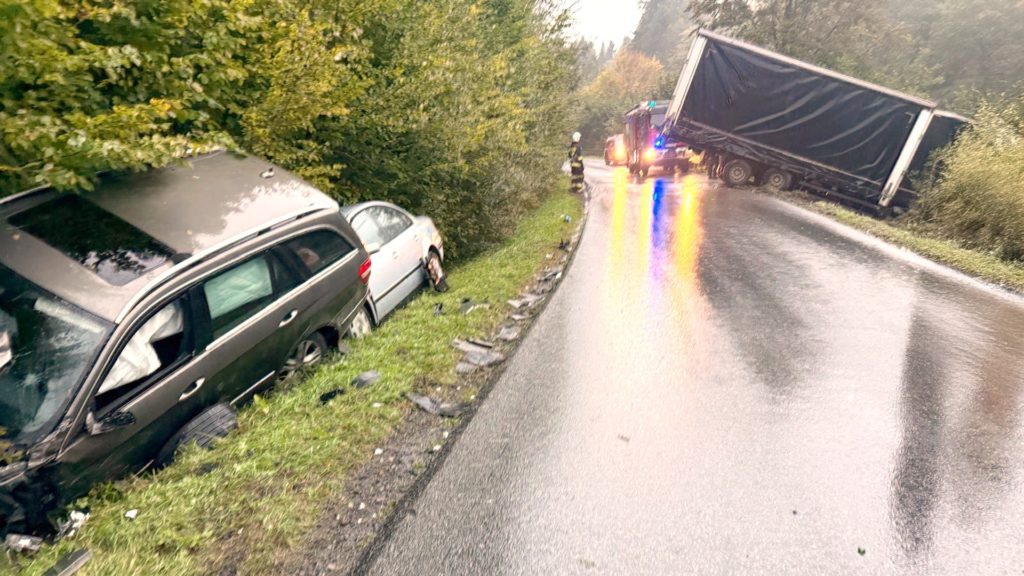 W dniu 30 września 2025 roku, około godziny 16:00, na drodze powiatowej w miejscowości Kwaszenina (gmina Ustrzyki Dolne) doszło do poważnego wypadku z udziałem samochodu ciężarowego oraz dwóch aut osobowych.