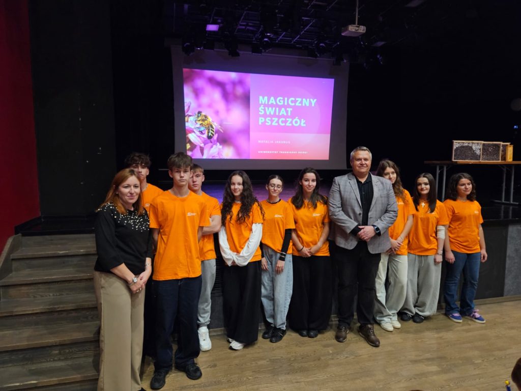 Pierwszy wykład nowego semestru zatytułowany „Pszczoły – mali giganci przyrody” poprowadziła Natalia Jakubus. Uczestnicy mieli okazję zajrzeć do wnętrza ula i poznać jego mieszkańców – od wyjątkowej matki pszczelej, przez pracowite robotnice, aż po trutnie. Dowiedzieli się, jak pszczoły postrzegają świat, jak powstaje złocisty miód oraz jakie inne skarby kryje pasieka – od wosku po propolis. Nie zabrakło również ciekawostek o pracy pszczelarza, strażnika ula, który dba o swoje pszczele rodziny, korzystając ze specjalnego stroju i narzędzi.