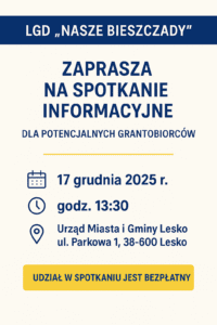 LGD „Nasze Bieszczady” zaprasza na spotkanie informacyjne dla potencjalnych grantobiorców